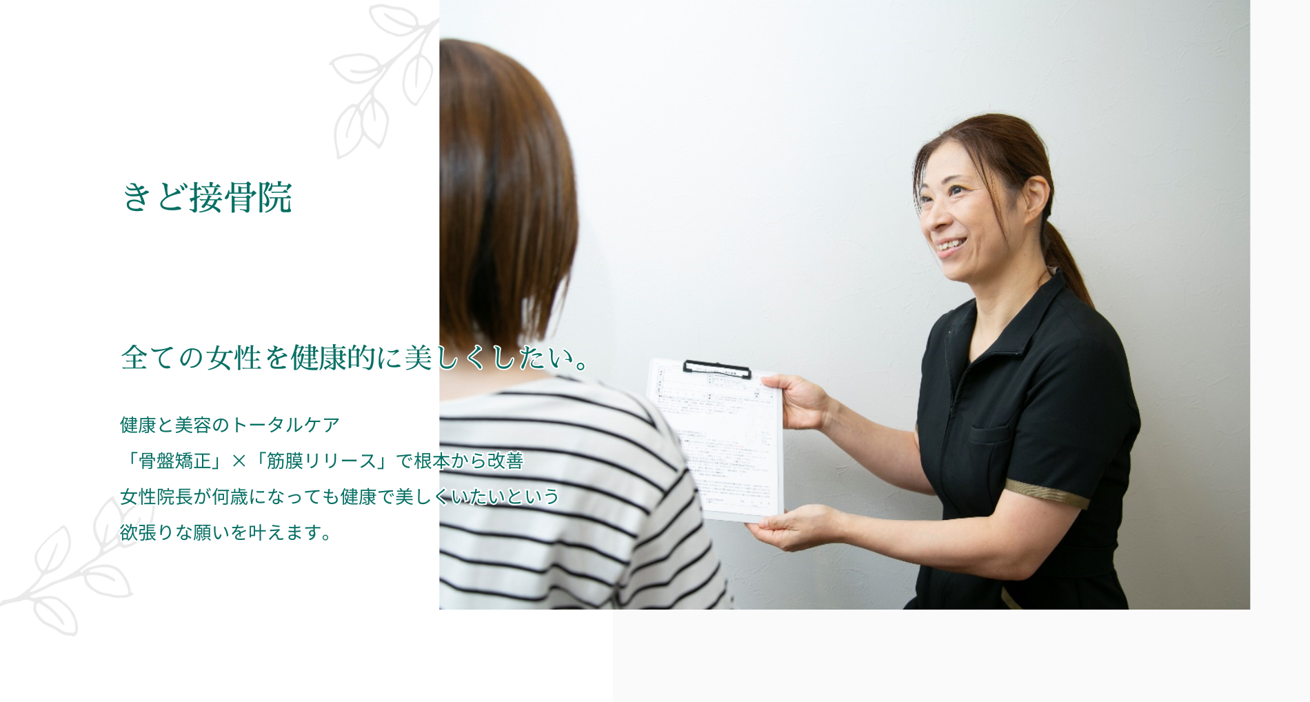 きど接骨院は、患者様の健康と幸せを第一に考える女性のための整骨院です。