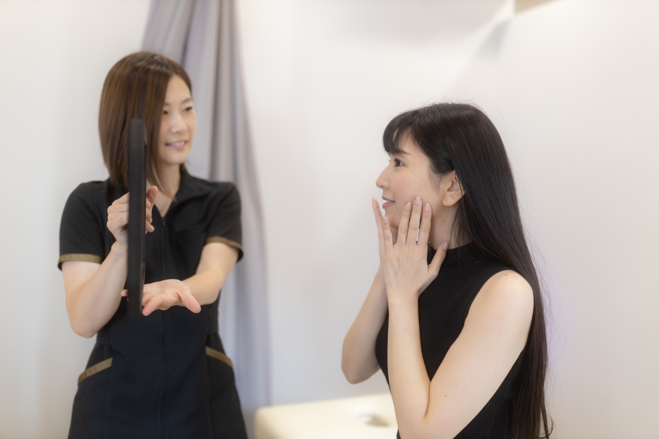 来院の目安は患者様のお身体の状態にもよりますので、カウンセリングの際に正確な来院ペースをお伝えさせて頂きます。患者様の多くは1週間~10日の間で1回のペースで8回ほどの施術で小顔の状態が持続し、しっかりケアされたい方は12回ほどの施術を受けて頂いております。